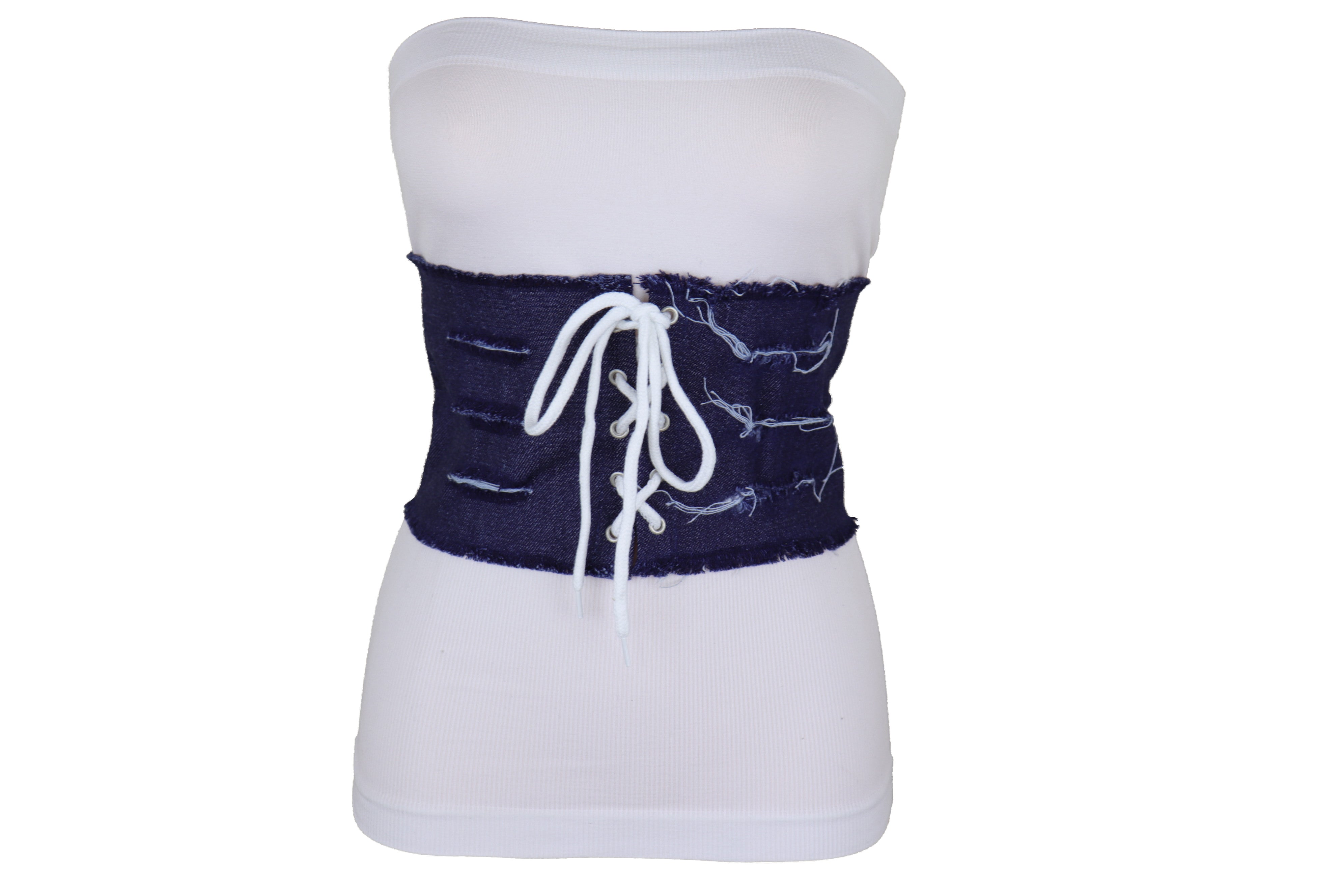 Women Dark Blue Color Denim High Waist Jeans Corset Fashion Belt Size S M