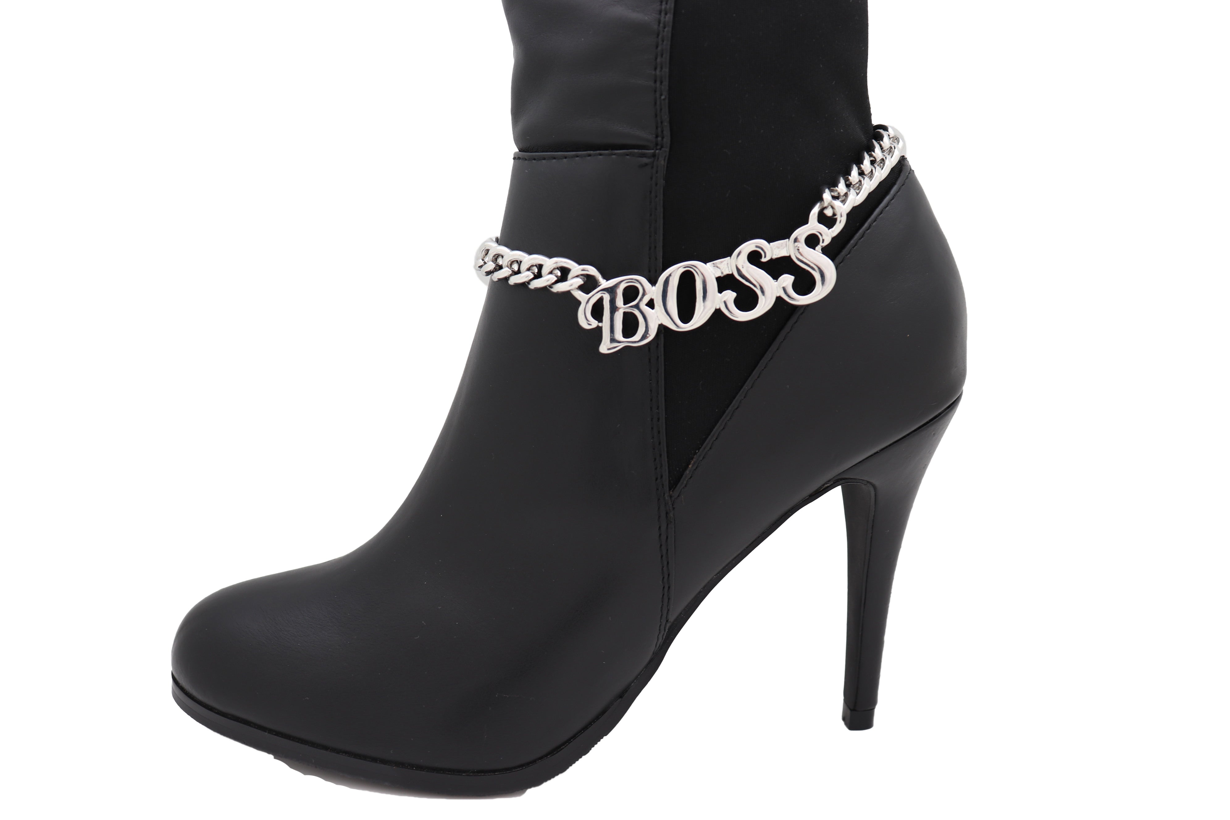 Western Bling Fashion Single Boot Strap Chain Bracelet - Metal chain strand charm