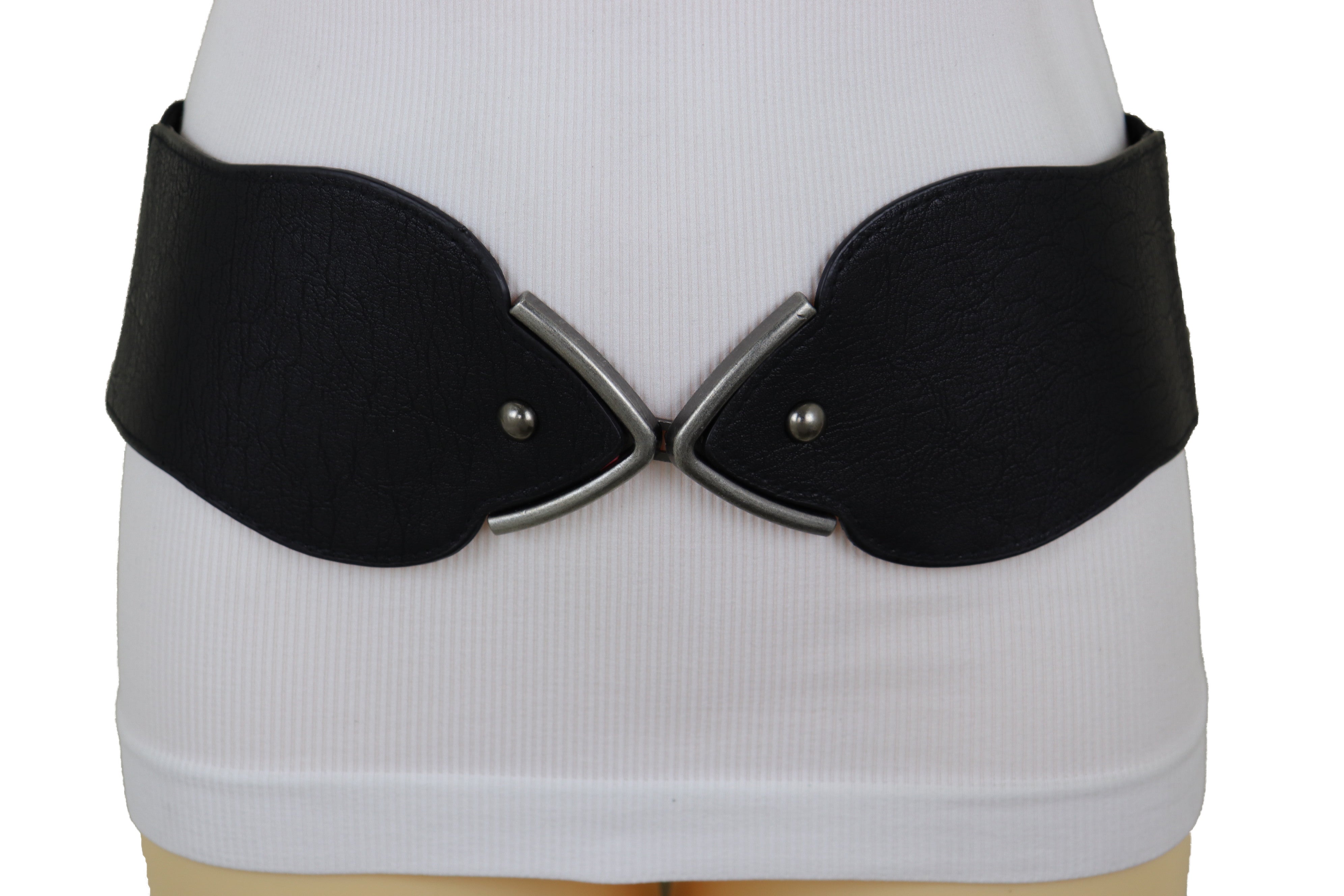 Color : Black faux leather and stretch waistband strap + silver metal buckle