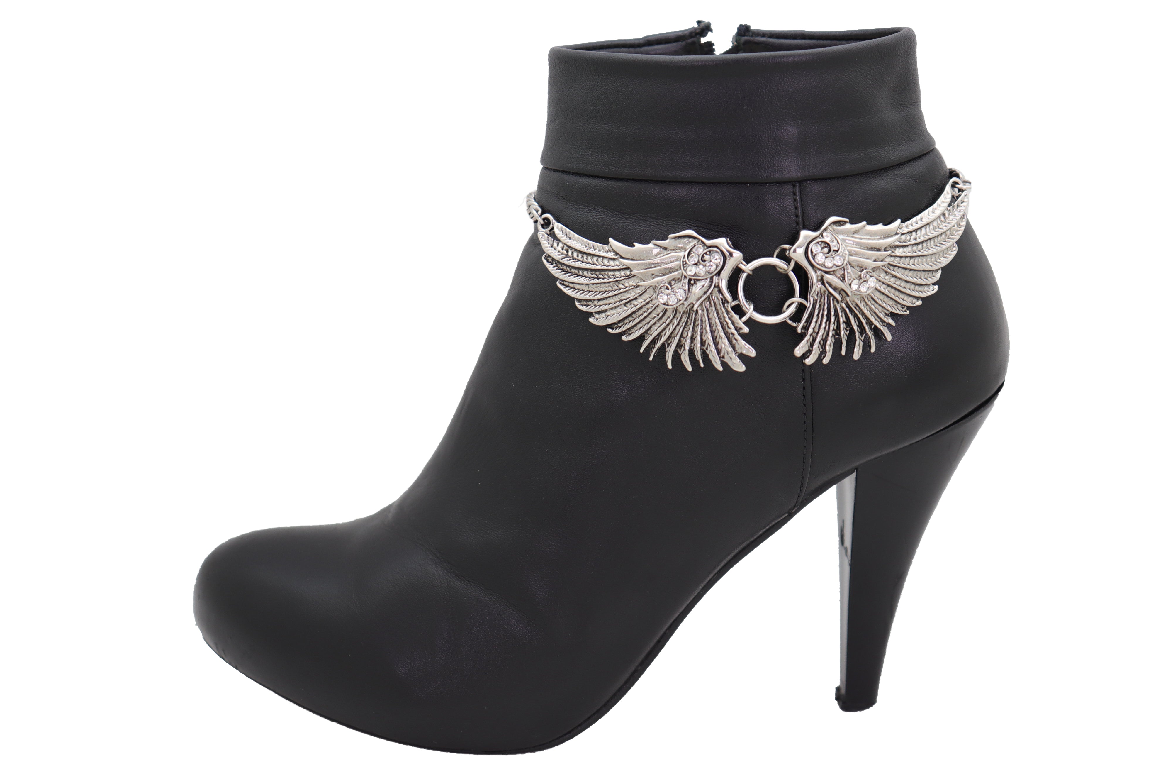 Western Silver Metal Boot Chain Bracelet Shoe Angel Wings Charm Jewelry