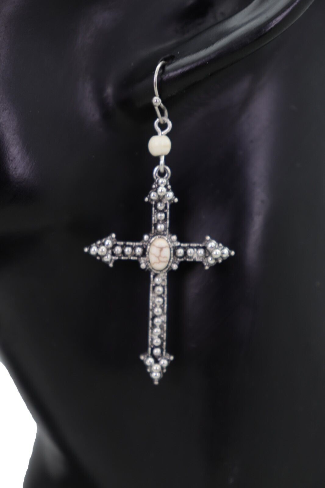 #CrossEarrings #SilverJewelry #ReligiousFashion #DangleEarrings #TrendyStyle #FaithJewelry
