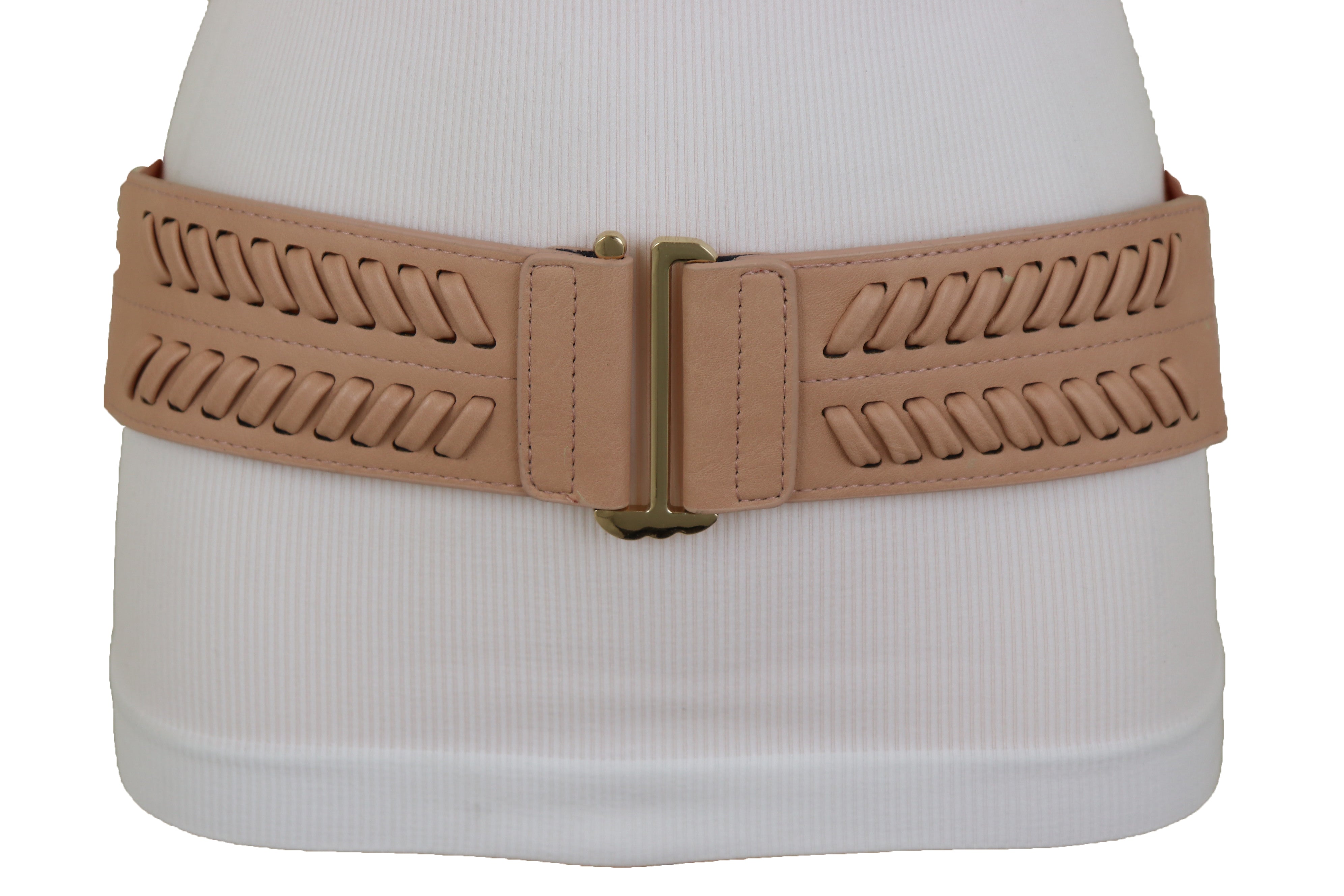 Pastel Pink Stripes Arrow Faux Leather Elastic Belt Gold Buckle Size S M