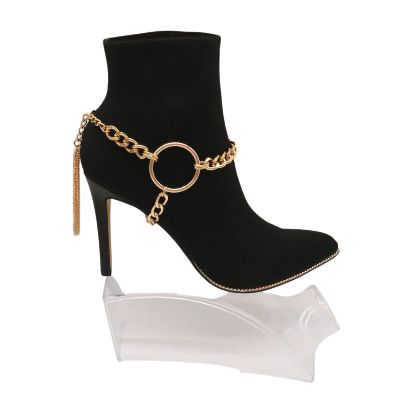 You should wear the boot jewelry with some drape from the ankle to prevent breakage of the chain. It is better not to wear it snug or tight fit |