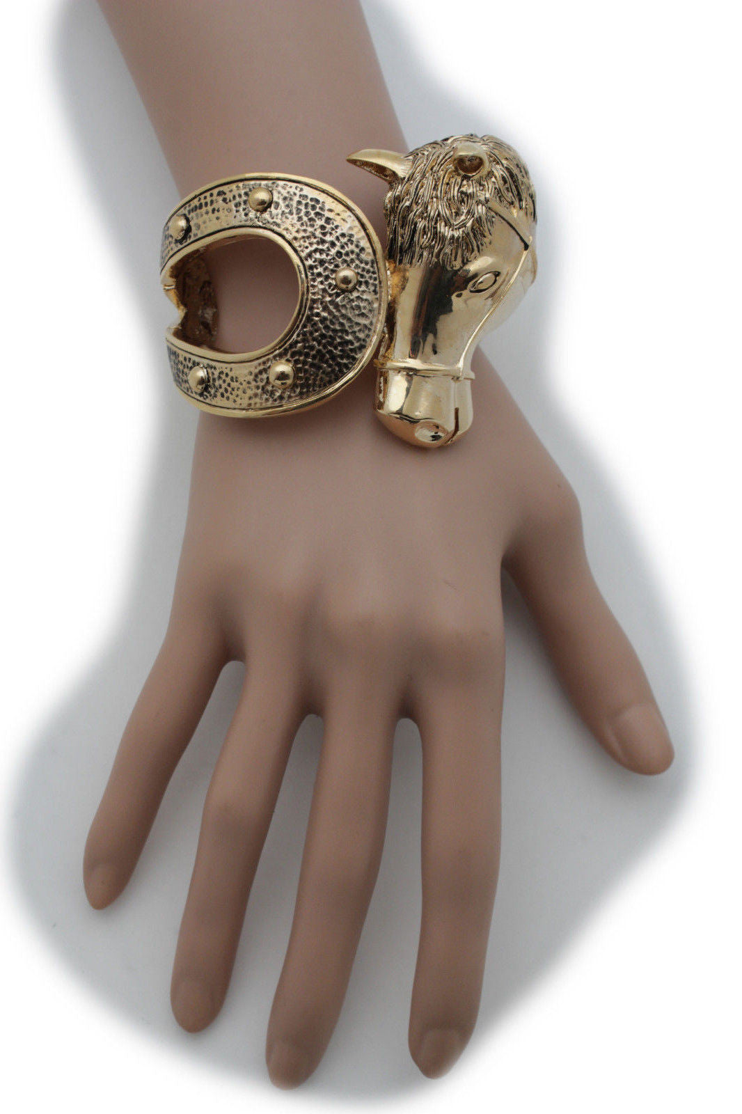 Women Gold Metal Cuff Bracelet Rodeo Horse Fashion Western Jewelry