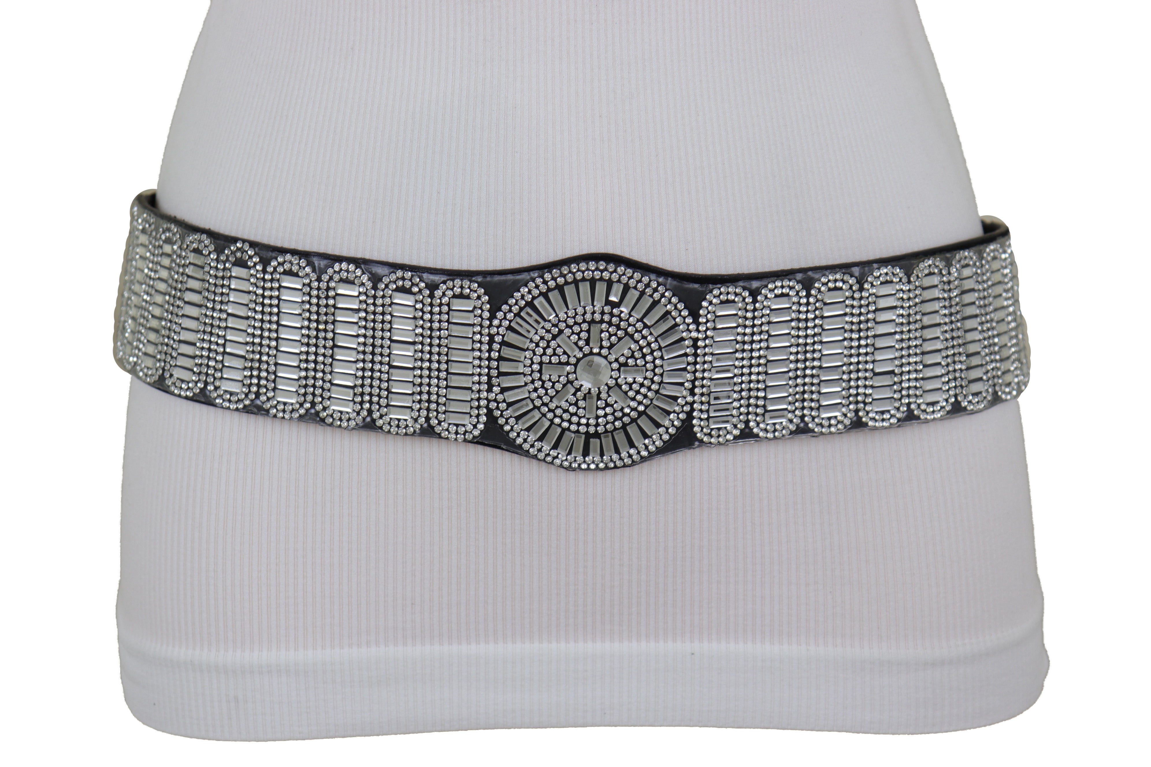 Black Elastic Band Night Club Party Fashion Belt Bling Silver Circle M L