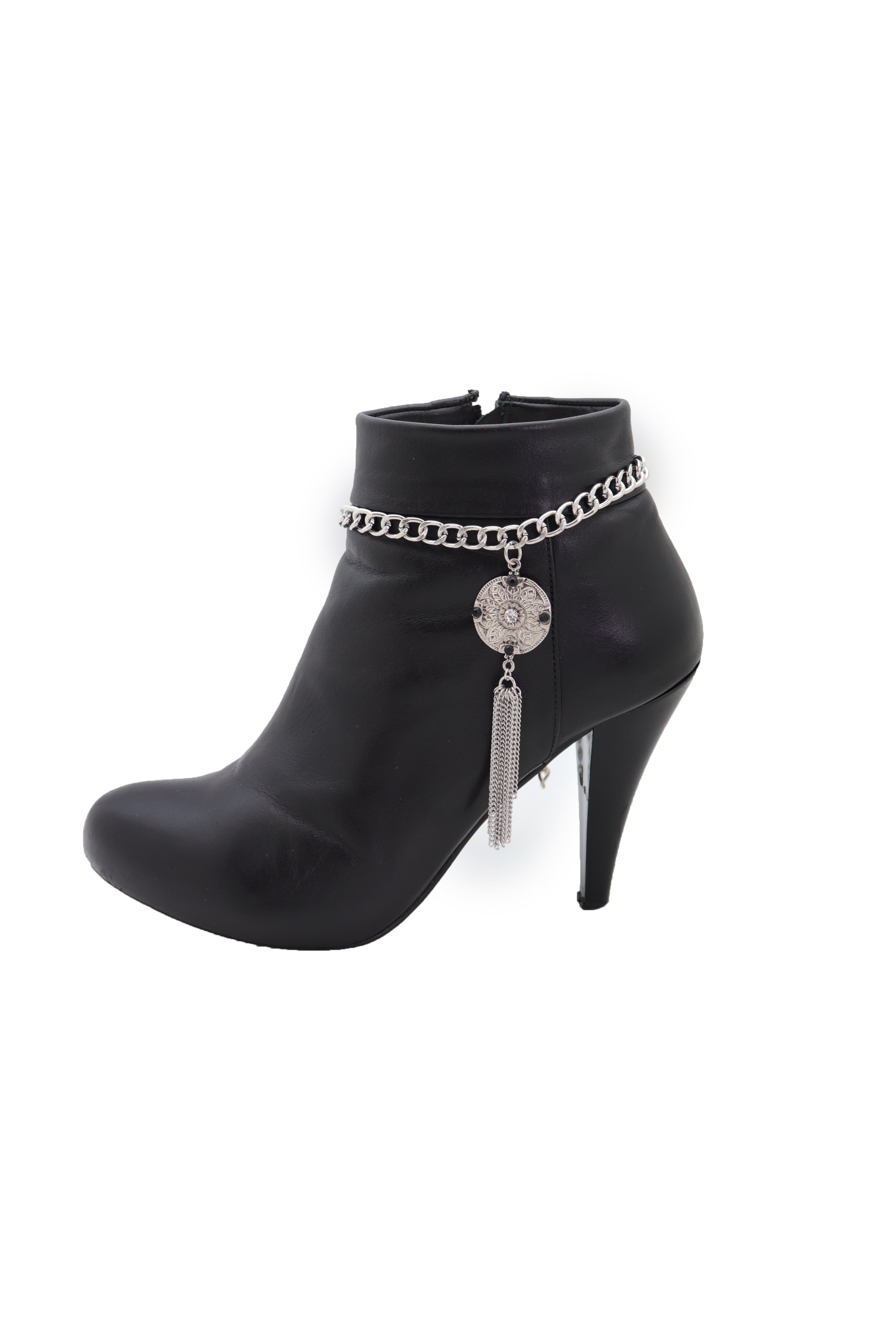 Brand New Fancy Western Fashion Sexy Boot Chic Metal Chain Links Fancy Rodeo - Single Bracelet One Side Only SOLD INDIVIDUALLY Western Bling Fashion Single Boot Strap Wrap Chain Bracelet - Metal chain strand charm pendant Great for special events, party, going out, dance, prom, photo shoot, day or night. We make this item ourselves This item is made in the U.S.A If you want to make them smaller or bigger please let us know (we will add or take of some of the extension chain) Can be worn day or night, winter fall or spring summer - fun and cool accessory You are buying a single strap bracelet (one side): Condition: Brand new Color: Silver metal chain links and charm + silver and black rhinestones beads