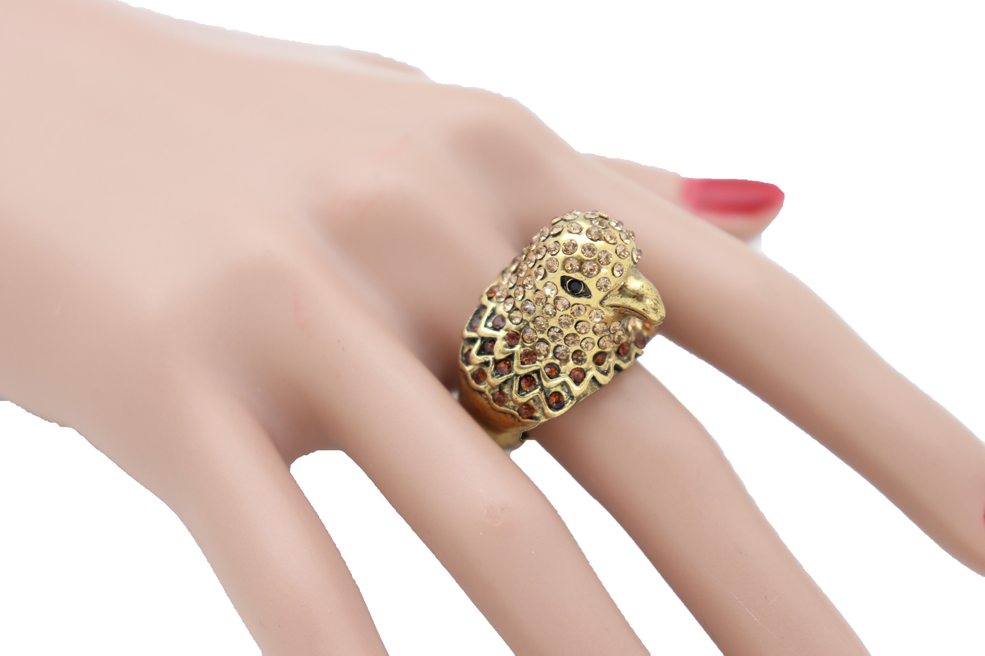 Color : Gold color metal ring and stretch band + gold, brown, and black rhinestones beads