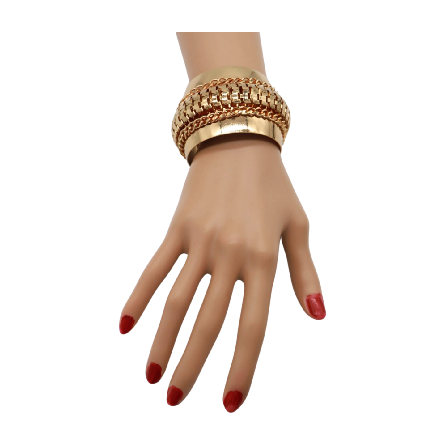 Women Gold Metal Wrist Cuff Bracelet Chain Mesh